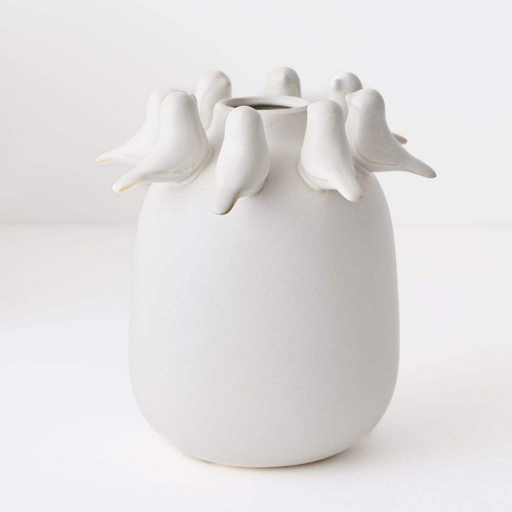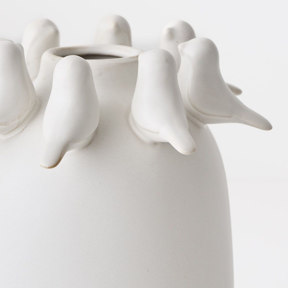 A charming small pot featuring a shiny glazed finish and delicate 3D bird details. Lovely on its own or paired with your favourite stem.