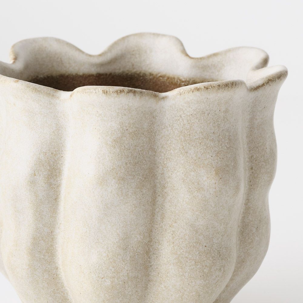 The Oliva Pot features a muted, warm earthy tone and a soft petal-like rim shape. A subtle, stylish piece for any interior.