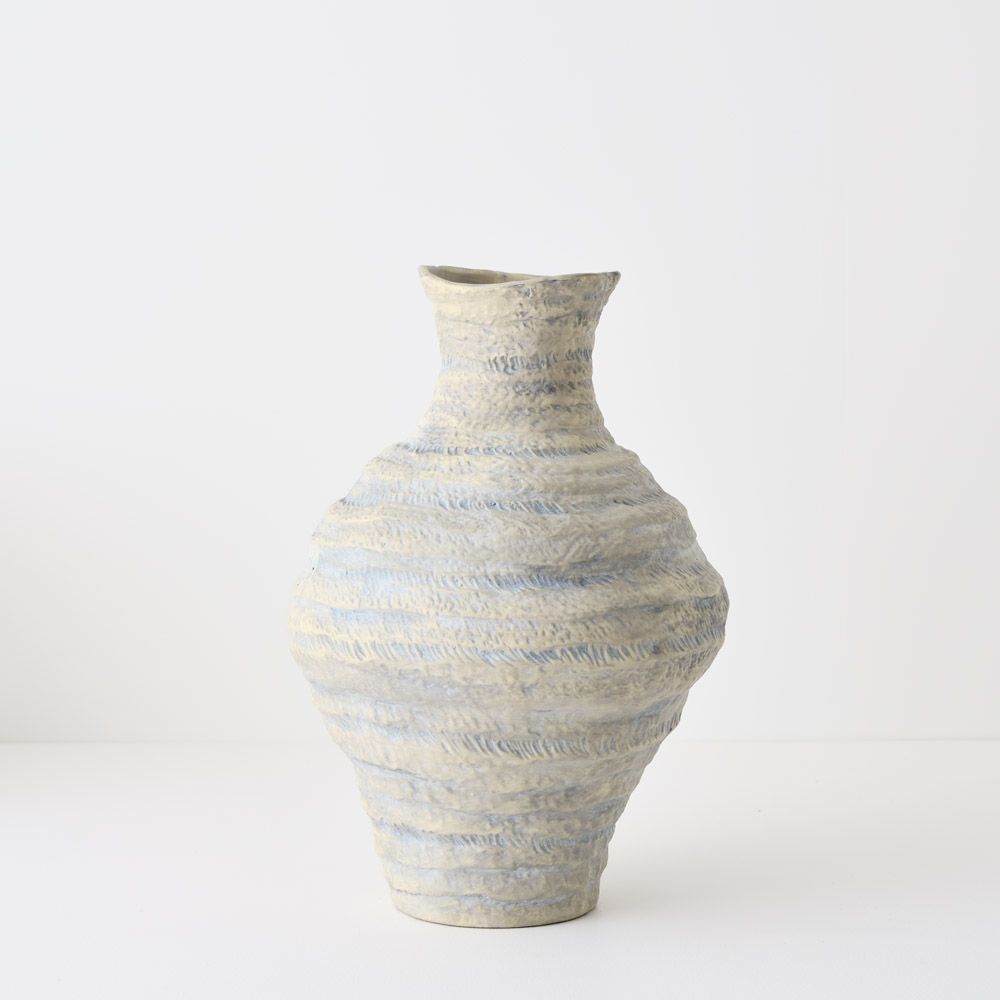 Earthy elegance meets rustic charm in this beautifully weathered pot. With cool-toned blues and greys, it’s a gorgeous showcase piece. Large in size and impressive in person, it brings character and texture to any space.