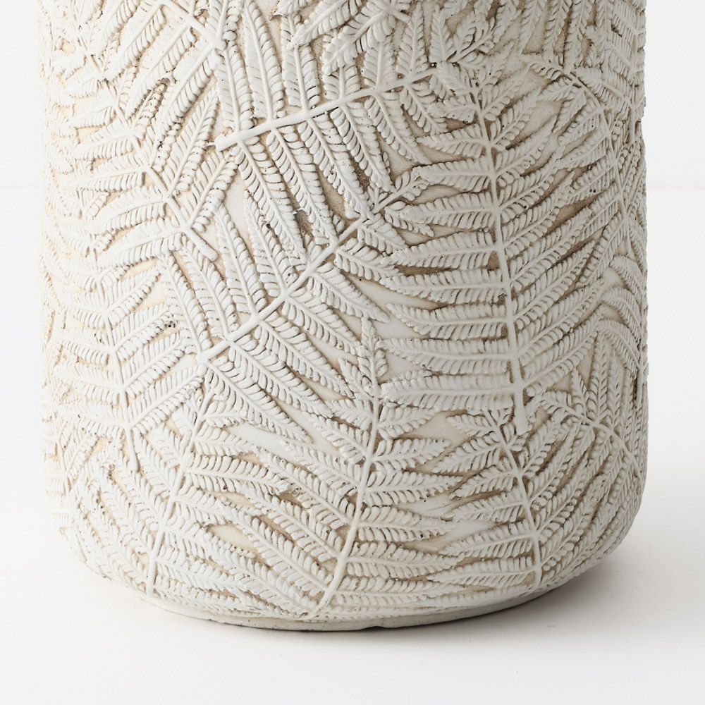 Gulli Pot - A generous-sized option ideal for plants and trees. Heavy and durable, it’s perfect for outdoor use yet stylish enough to bring indoors. The pot features an all-over fern detail, adding natural texture and charm to any setting.