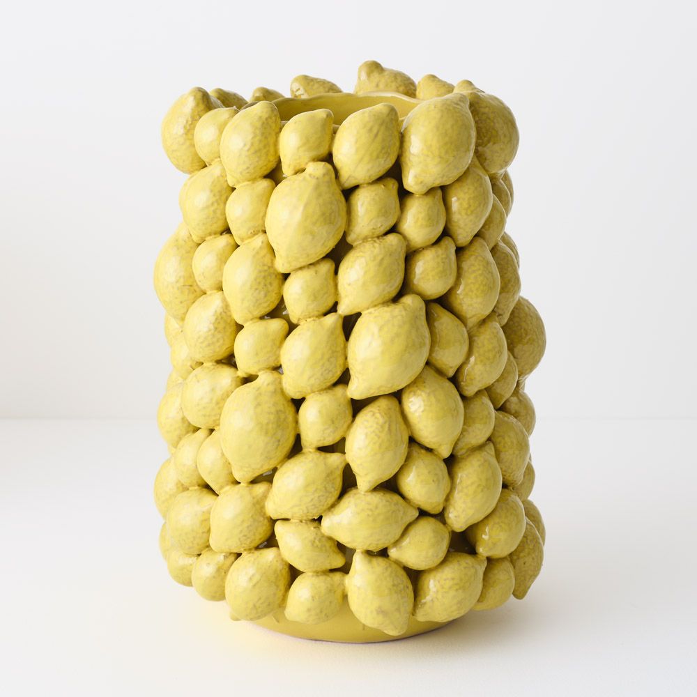 Citrico Vase - A ceramic delight full of colour and charm, with fruit details encompassing the piece. Perfect for styling in your kitchen or dining space to add a fresh, vibrant touch. A playful way to bring personality and warmth to your decor.