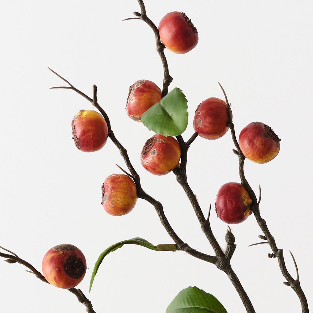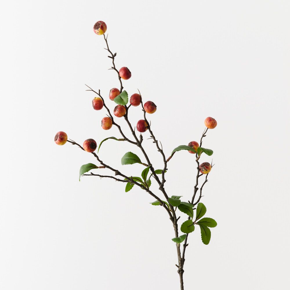 A lifelike stem featuring small crabapples and delicate foliage, adding texture and a touch of natural charm to any arrangement. Perfect for layering with florals or using as a standalone accent, it brings effortless colour and interest to your styling.