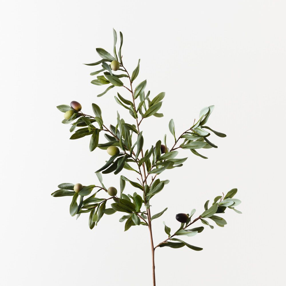Olive Leaf Spray with sculptural foliage and lifelike detail brings understated elegance and a modern editorial touch to any space.