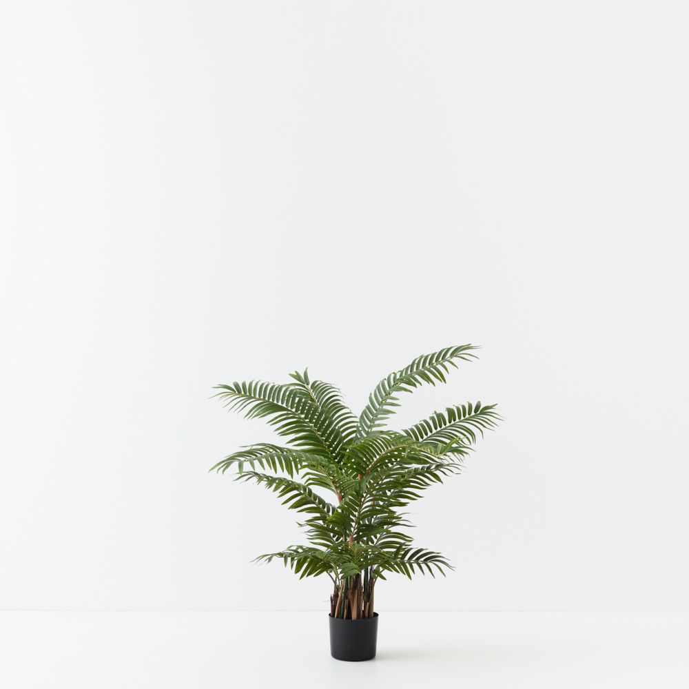 A classic, tropical palm with feathery, arching fronds that add movement and a lush feel to any space. Fully finished and ready to display, it requires no maintenance. Perfect for creating effortless greenery and a relaxed, natural vibe indoors.