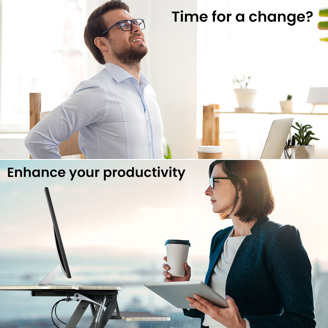 The FORTIA Corner Shaped Desk Riser is an ergonomically designed solution that enables you to set the perfect height for standing during work or study. With exceptional quality design and build quality, this desk riser is suitable for both home and corporate offices. You can look forward to enhanced productivity, as well as the reduction of any back ailments as you improve posture and core strength. In one easy motion, the FORTIA Desktop Riser delivers seamless height adjustment. The adjustment levels are limitless, enabling whoever is using the workstation to work at the ideal height.