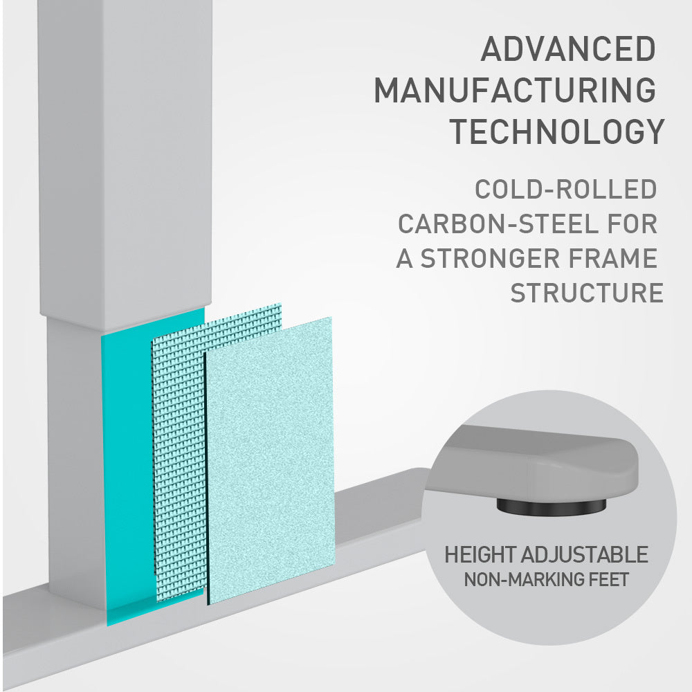 The effortless height adjustment feature allows you to switch between sitting and standing positions with just the touch of a button. This not only promotes better posture but also helps combat the health risks associated with prolonged sitting. The non-marking feet ensure stability and the silver color adds a touch of elegance to your office space.