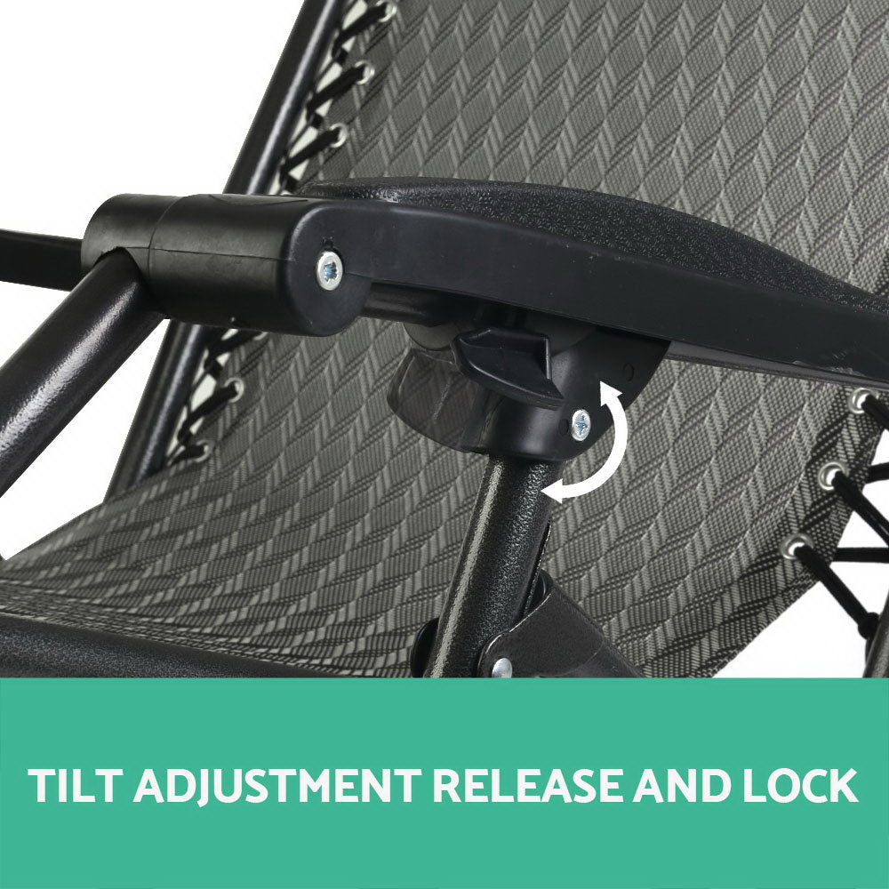 Gardeon 2PC Zero Gravity Chair Folding Outdoor Recliner Adjustable Sun Lounge Camping Grey