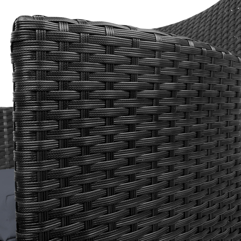 Gardeon 3PC Bistro Set Outdoor Furniture Rattan Table Chairs Cushion Patio Garden Idris