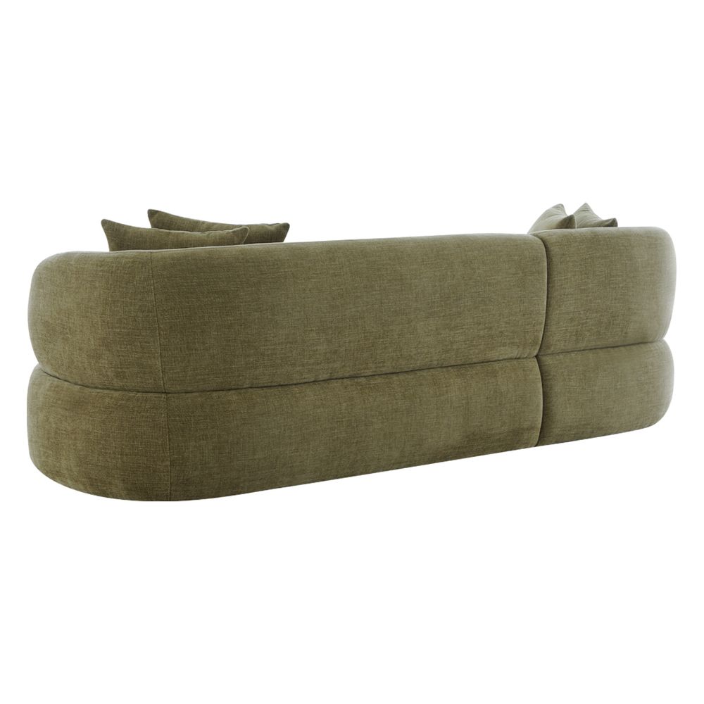 Experience ultimate comfort and contemporary style with this 3 seater sofa. Upholstered in luxurious sage chenille, its plush, inviting texture enhances both modern and classic interiors. The deep-seated design and generously padded cushions provide superior relaxation, while the sculptural curved silhouette adds a refined yet relaxed aesthetic. A spacious left chaise ensures maximum comfort, inviting you to stretch out and unwind with ease. Accompanied by four matching scatter cushions, this sofa offers additional support and a cohesive, polished look. Built for durability and style, this sofa is both functional and aesthetically pleasing, making it an ideal centrepiece for your home. Available in three luxury colours and sold separately as part of a range, allowing you to curate a beautifully coordinated interior.