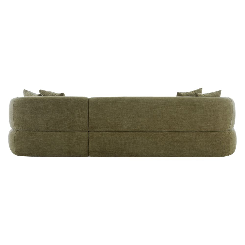 Experience the perfect blend of comfort and style with this 3 seater sofa. Upholstered in luxurious sage chenille, its soft, inviting texture offers a perfect balance of elegance and relaxation. The deep-seated design and generously padded cushions provide superior comfort, while the sculptural curved silhouette adds a refined yet relaxed aesthetic. A spacious right chaise invites you to stretch out effortlessly, making it ideal for lounging or entertaining. Accompanied by four matching scatter cushions, this sofa delivers both style and support for a cohesive, polished look. Built for durability and style, this sofa is both functional and aesthetically pleasing, making it an ideal centrepiece for your home. Available in three luxury colours and sold separately as part of a range, allowing you to curate a beautifully coordinated interior.