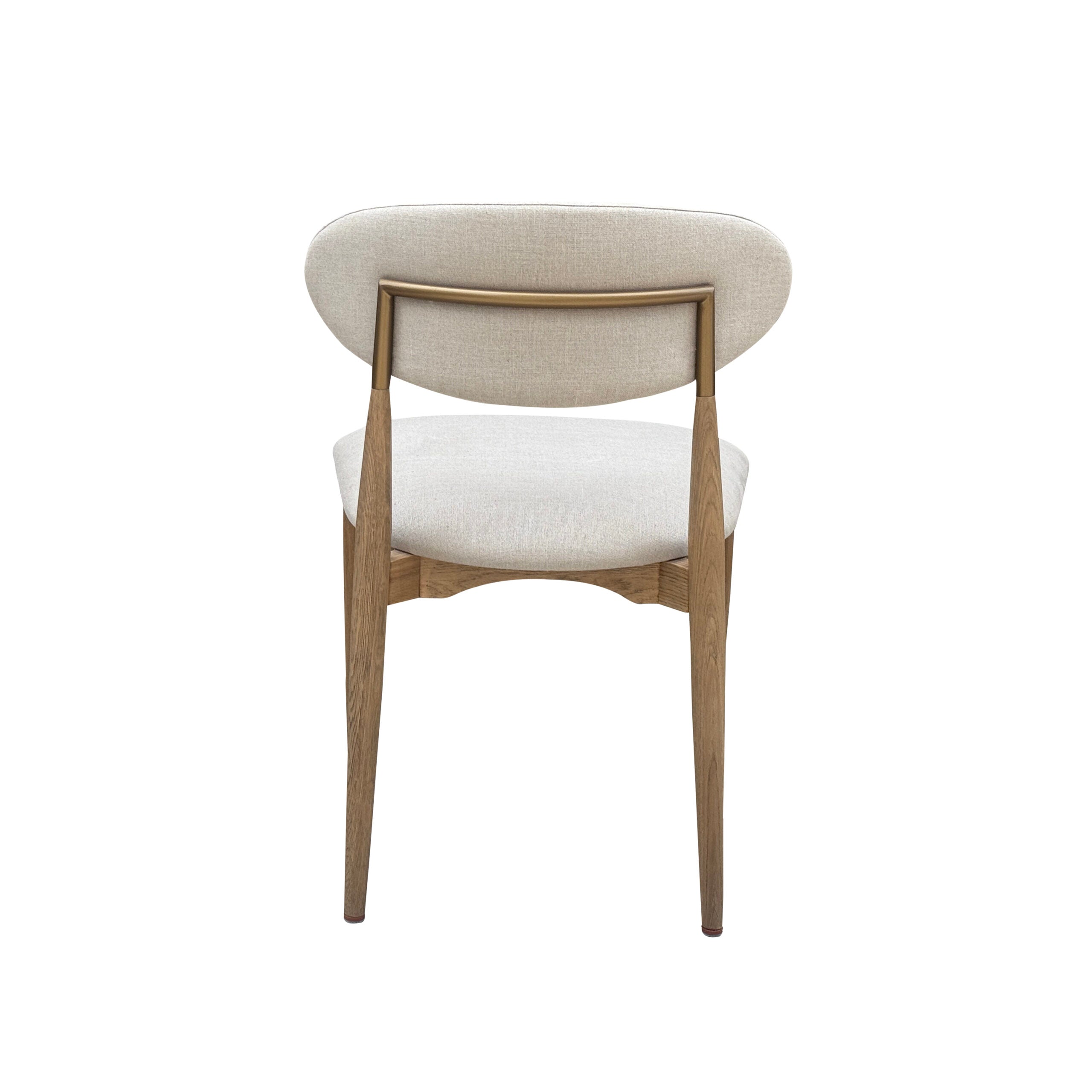 Frame handcrafted of kiln-dried solid American white oak, Weathered oak finish, Backrest is crafted of brass steel tubing, Seat and back are padded with high-density foam, 100% oatmeal linen, Size: 52cmW x 55cmD x 80cmH; Seat height 50cm, SKU: HLM63