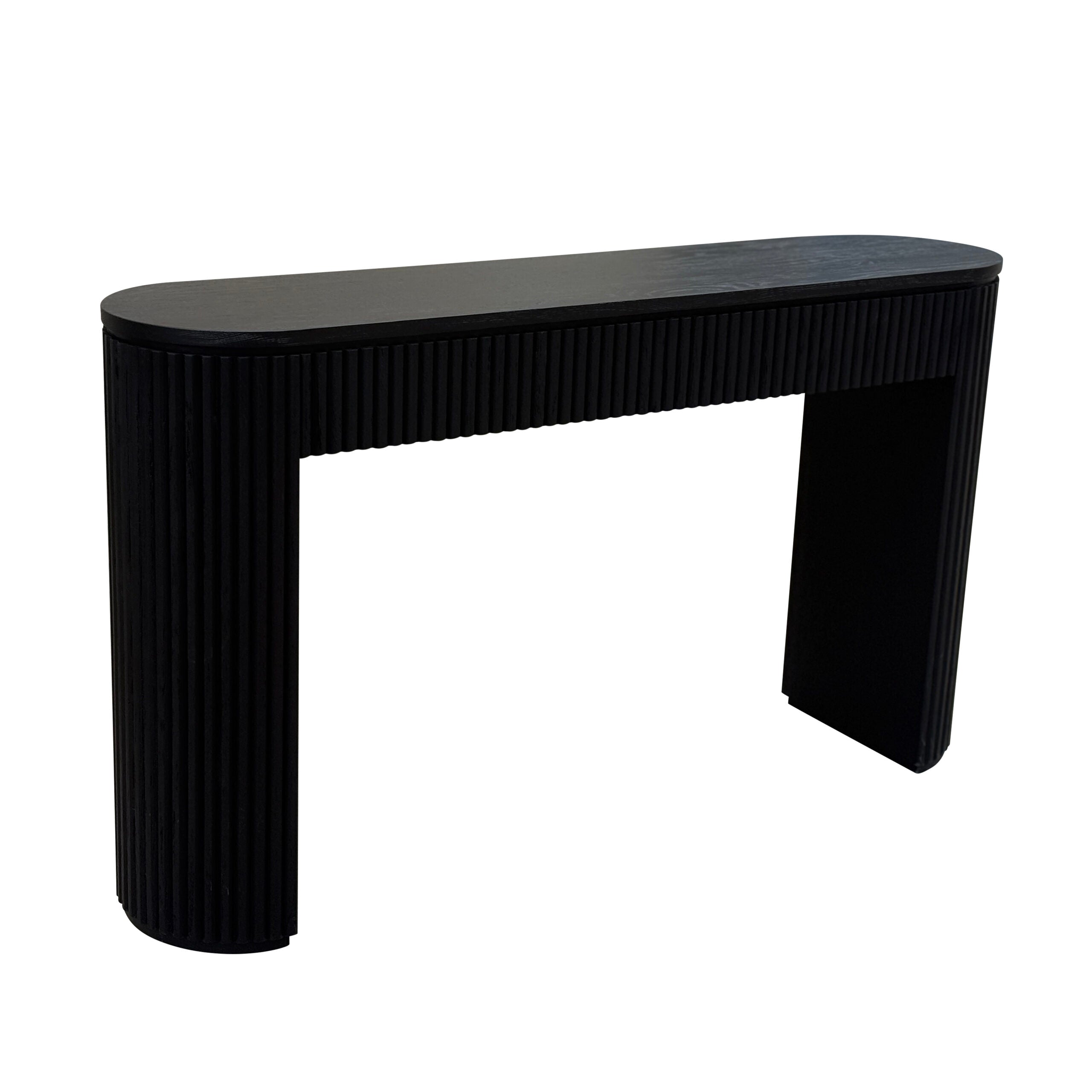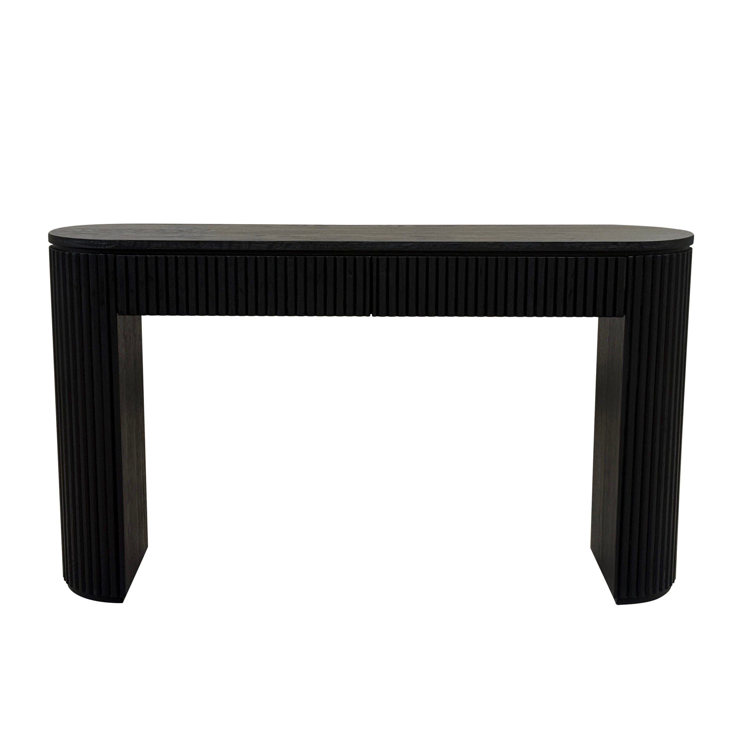 Handcrafted of reeded solid oak timber and veneers, Black oak finish, Solid oak reeding, Soft close English-dovetailed drawers, Use coasters under beverages to prevent marks and stains, Size: 150cmW x 36cmD x 86cmH, SKU: HL629-107