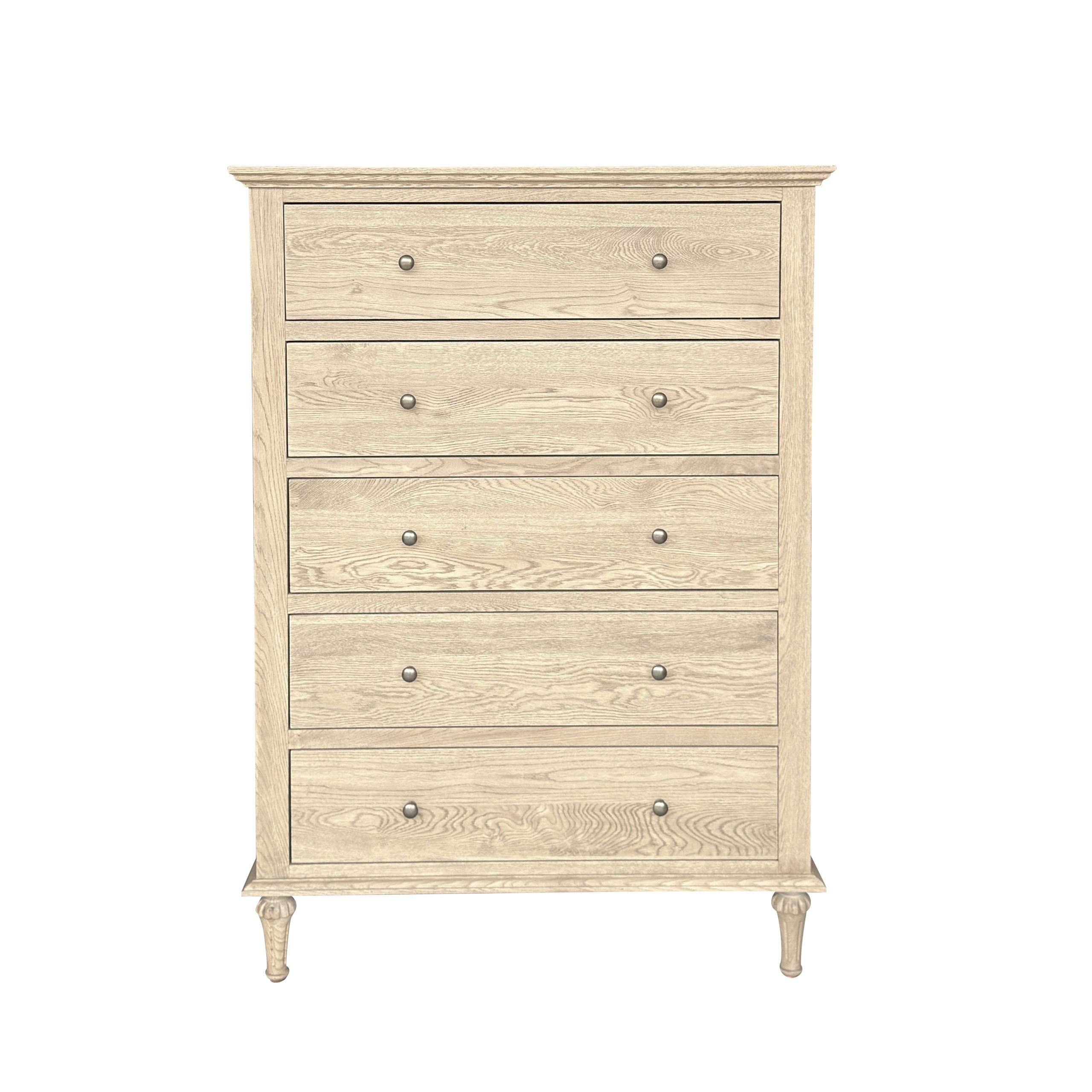 Handcrafted of solid oak and fine oak veneers in weathered oak finish, Built with mortise-and-tenon joinery, Drawers have English-dovetailed construction, Brass handles, Size: 91cmW x 50cmD x 127cmH, SKU: HL643-105