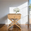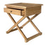 The cross legs base not only adds a modern touch, but also provides stability and durability. The brass handle and dovetailed drawer add a touch of elegance and functionality, making this side table a perfect addition to any living room or bedroom.