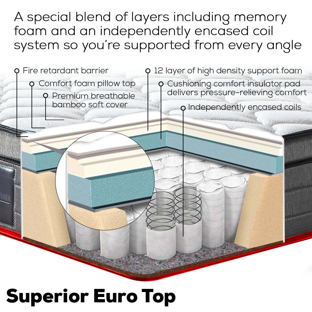 KINGSTON Mattress DOUBLE Size Bed Euro Top Pocket Spring Bedding Firm Foam 34CM