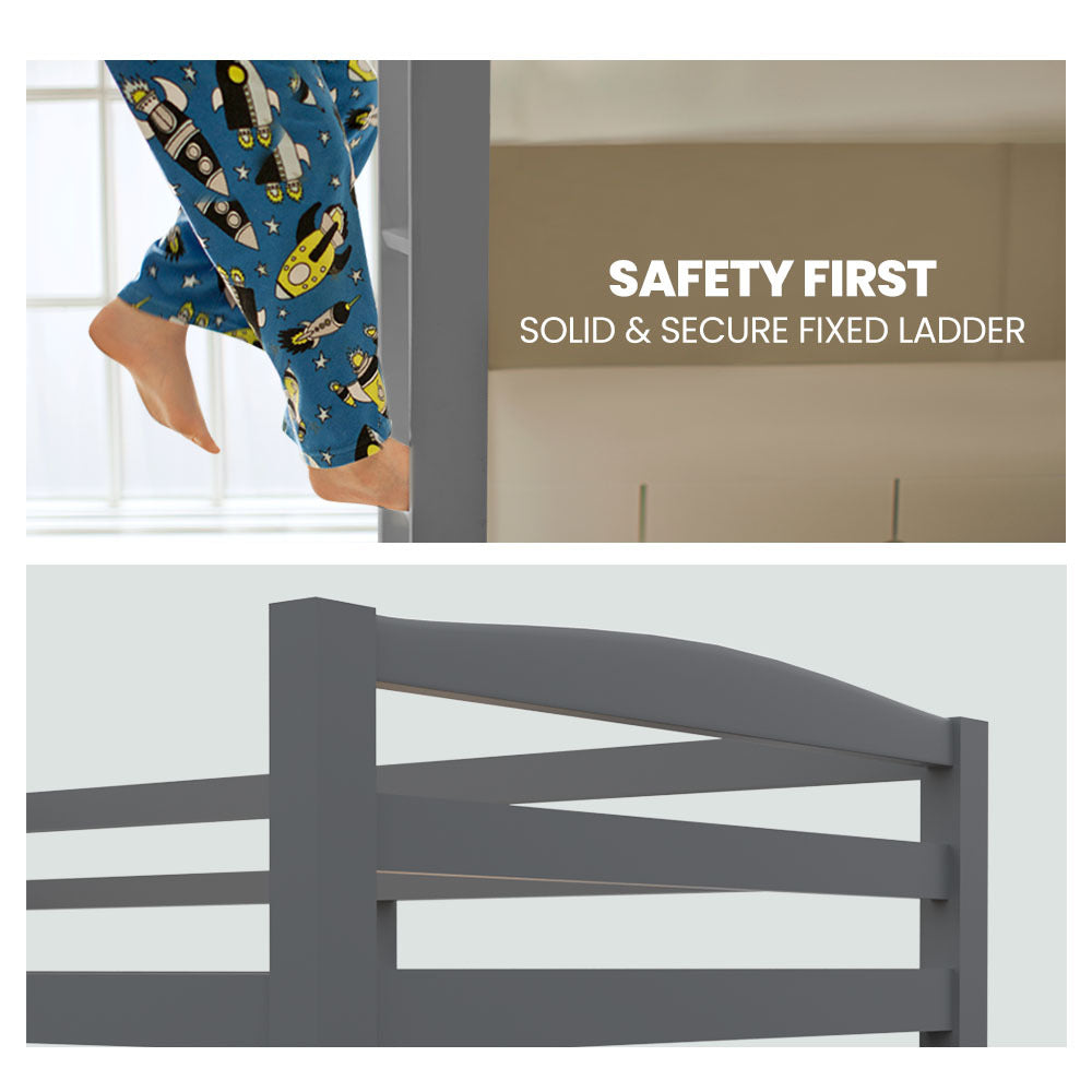 Kingston Slumber Bunk Bed Frame Single Wooden Children Timber PIne Wood Loft Kids Bedroom Furniture