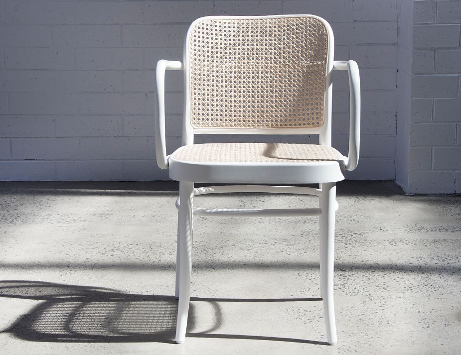 811 Hoffmann Armchair - White - Cane Seat - Cane Backrest - by TON