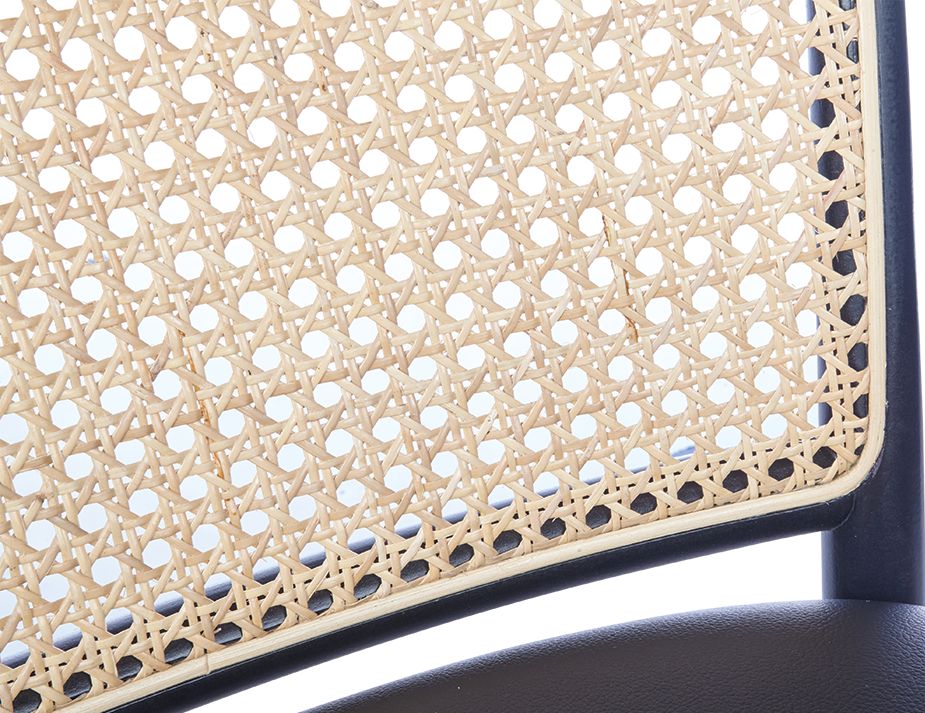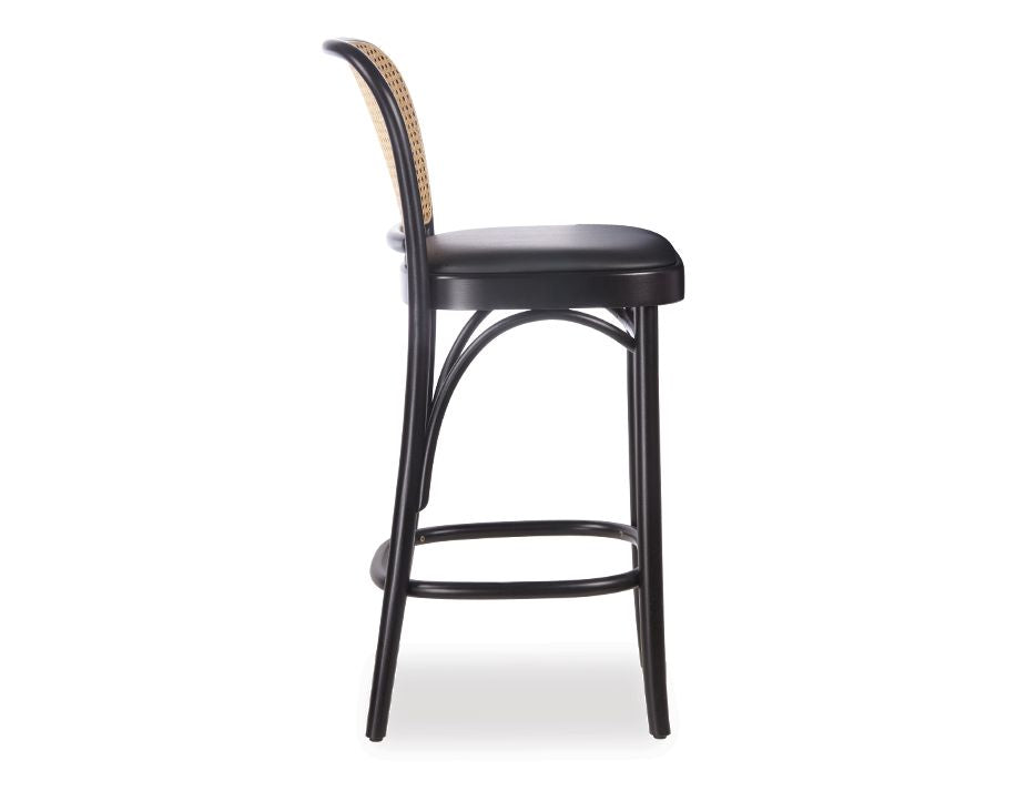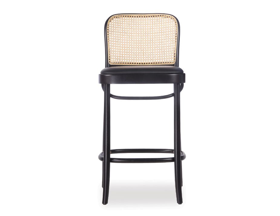 811 Hoffmann Stool - Black Stain - Cane Backrest - Black Upholstered Seat - by TON