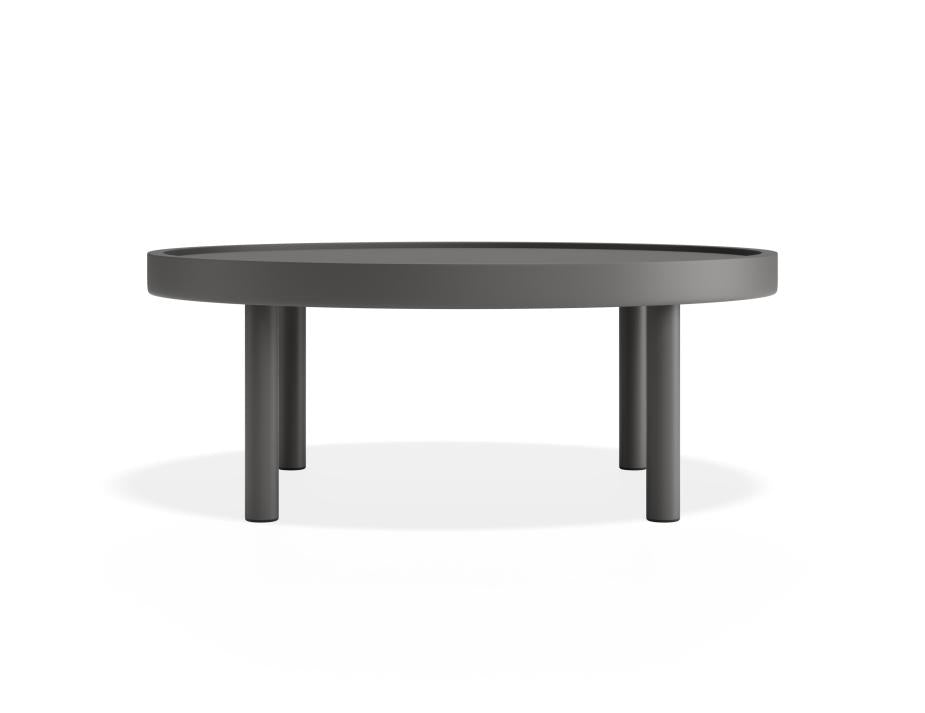 Aluna Coffee Table - Charcoal: Round Outdoor Coffee Table The Aluna Coffee Table - Charcoal is a durable round outdoor coffee table designed to meet the demands of commercial outdoor settings. Engineered by Bent Design Studio, it delivers on performance, aesthetics and reliability, making it a functional choice for workplace rooftops, hospitality terraces or residential developments. Robust construction with clean-lined Scandinavian design This piece features a robust aluminium build with a lightweight 6.9kg profile, finished in a matt charcoal powder coat for added durability and weather resistance. The clean-lined, low-profile form reflects Scandinavian design principles—practical, minimal, and built to perform in high-traffic outdoor environments. The recessed tabletop adds visual depth and helps to contain objects, while the compact 80cm diameter footprint supports flexible configurations across projects. Built for hospitality, commercial and flexible outdoor settings Compact and easy to reposition, the Aluna Coffee Table supports a wide range of outdoor applications—ideal for hospitality venues, workplace breakout zones, apartment balconies or landscaped communal areas. Its durable frame and powder-coated finish make it suitable for all-weather use, offering long-term value for specifiers, architects, and project managers seeking reliable, off-the-shelf outdoor solutions.