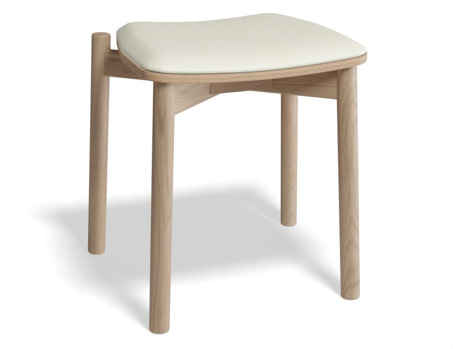 Andi Low Stool - Natural Ash with Pad - 45cm - White Vegan Leather Seat Pad