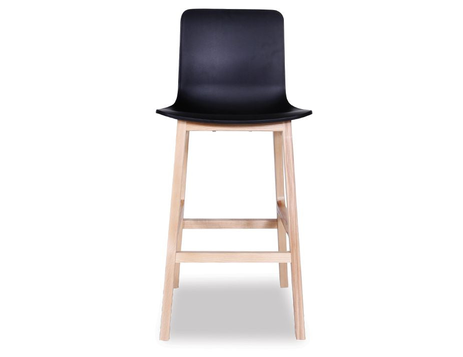 Ara Stool - Natural - Black Shell - Bar Bench Seat Height 74cm - Black Seat - Natural Ash legs