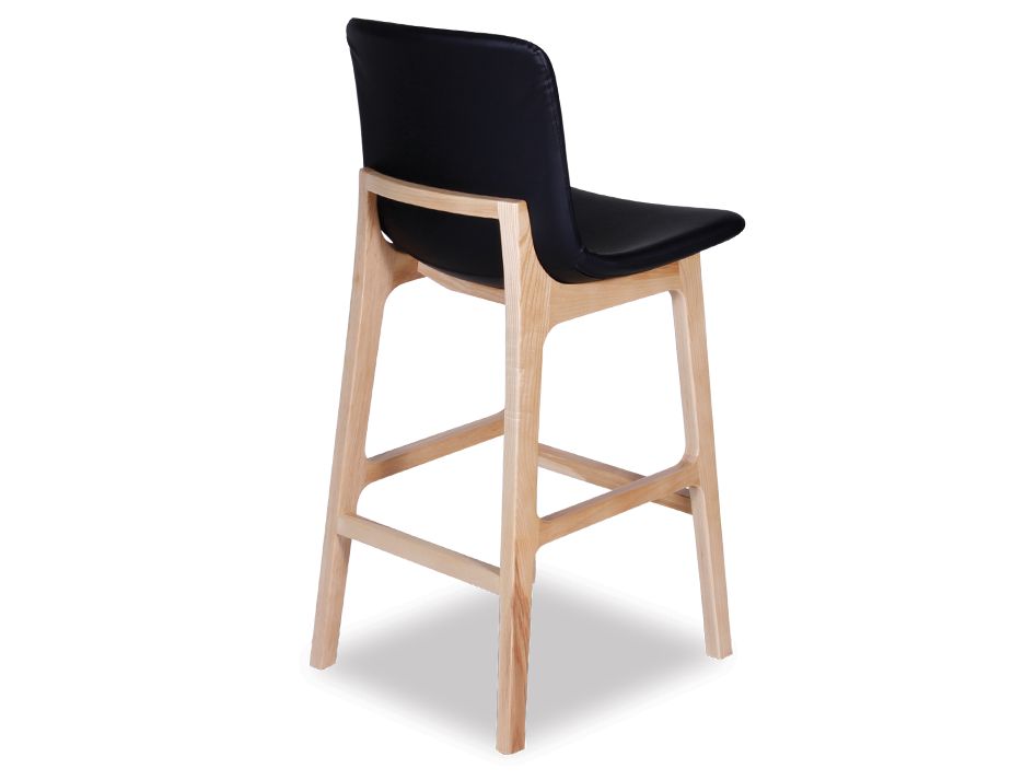 Ara Stool - Natural - Black Pad - Black padded Seat - Natural Ash legs 74cm Seat height