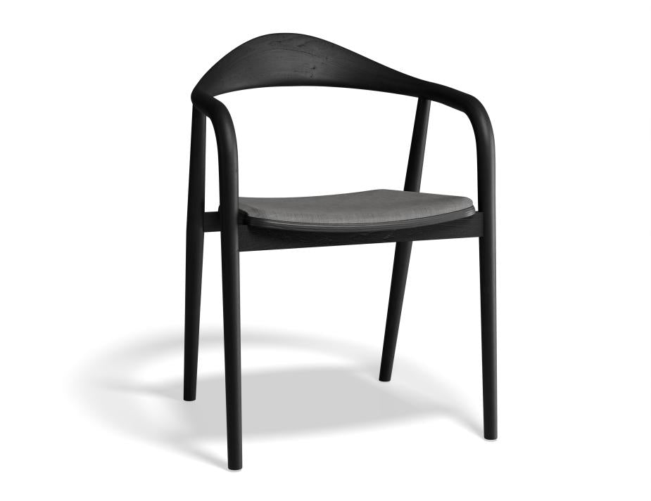 Design That Captivates: Arki Black Ash Armchair with Padded Seat The Arki Armchair in Black Ash with Pad offers a striking visual statement, blending the warm, natural essence of wood with a bold, contemporary design. Its curved backrest and embracing armrests are meticulously crafted to provide an inviting and comfortable seating experience, while the sleek black finish adds a touch of sophistication to any room. Crafted from the Finest: Black Stained American Ash This armchair is made from high-quality Black Stained American Ash, known for its durability and rich, deep colour. The wood's natural grain is highlighted by the black stain, offering a timeless elegance that complements any interior design scheme. Its solid construction ensures that the chair is not only a visually appealing addition to your space but also a lasting one. Customizable Luxury: Upholstery That Suits Your Style With a variety of upholstery options available, the Arki Armchair can be customized to fit your personal style and comfort preferences. Choose from four faux leather colours for a sleek, modern look, or select from two fabric colours for a softer, more textured appeal. Each upholstery is designed to enhance the chair's aesthetic while providing a comfortable, plush seat that invites you to relax and unwind.