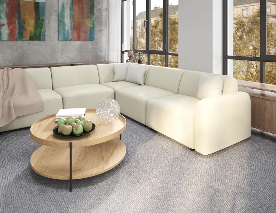 Atticus Modular Sofa - Config L Curved Open Ends - Ivory Cream