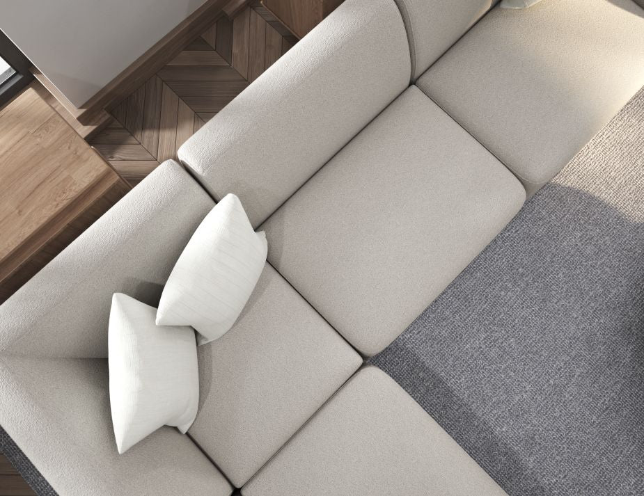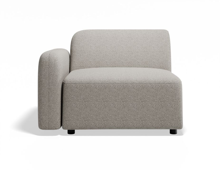 Atticus Modular Sofa Section - Left Arm in Oyster Grey Fabric - Elegantly Modern Enhance your living space with the Atticus Modular Sofa Section - Left Arm, crafted in a chic oyster grey fabric. This piece boasts a minimalist design characterized by sharp, clean edges that provide a modern look, ideal for various settings. Its modular nature allows it to be a versatile component in any sofa configuration, perfect for both residential customers and interior designers seeking stylish, functional furniture. Sleek Edges Define the Atticus Left Arm Sofa Section: Comfort and Style in Oyster Grey The Atticus Grey Sofa Section offers a combination of comfort and style, making it an excellent choice for any home or design project. Wrapped in a durable oyster grey fabric, this comfortable sofa part invites relaxation with its deep, cushioned seat and supportive back. The neutral hue complements a wide range of colour schemes, while its stain-resistant properties ensure long-lasting beauty and ease of maintenance. Functional Design with Elegant Aesthetics Modular Flexibility: Easily integrate this left arm section with other pieces to tailor your seating arrangement to your space and needs. Sophisticated Look: The oyster grey fabric colour and precise construction enhance the fabric sofa's visual appeal, adding a touch of elegance to any room. Durable and Practical: Ideal for daily use, the fabric is resistant to wear and easy to care for, standing up to the demands of busy environments. Versatile Use: Perfect as a standalone chair or part of a larger set, this floor sofa section adapts to both small and large spaces. Choose the Atticus Modular Sofa Section with the Left Arm to bring both functionality and chic design to your interior. Its modular capability makes it an essential building block for creating a customized seating solution that meets your style and comfort needs.