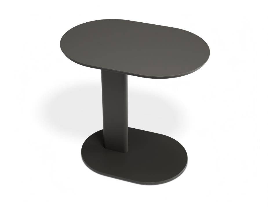 Small Black Aluminium Side Table for Outdoor Use - Compact and Weather-Resistant The Deck Side Table in Charcoal offers a refined balance of modern styling and practical functionality. Designed for outdoor versatility, this compact aluminium side table brings strong visual contrast and utility to contemporary patios, urban rooftops, or contract-grade outdoor lounges. As a small outdoor side table with minimal footprint, it's a smart choice where space, durability, and design integrity converge. Durable Powder-Coated Outdoor Metal Side Table Constructed from powder-coated aluminium, this black outdoor side table delivers long-term resilience in exposed environments. The dark Charcoal finish creates a sleek, architectural tone that complements light-toned seating or neutral garden palettes. The oval base and top, connected by a central column, offer maximum stability with a compact and functional form suited to modern outdoor living. Ideal as a Functional Outdoor Accent for Seating Zones and Lounges Perfect for positioning beside sun loungers, armchairs or modular sofas, the Deck table supports everyday use while maintaining a light footprint. As a modern side table, it's suited to hospitality fitouts or residential balconies where reliable performance and smart styling are key. Use it to hold drinks, lighting, or décor in compact outdoor zones where clean-lined design makes an impact.