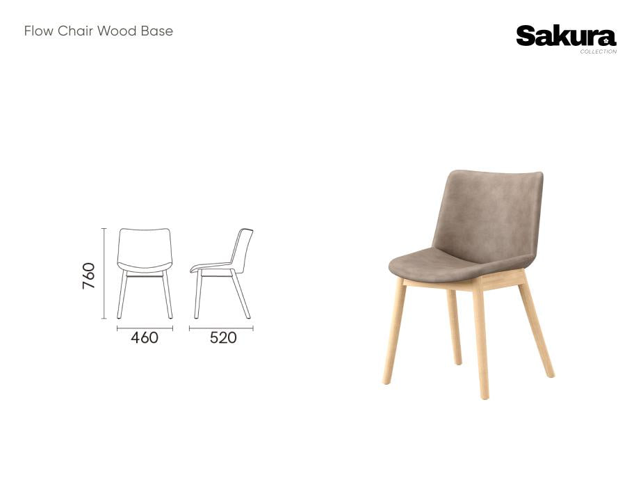 Flow Dining Chair - Wood Base: Stylish and Comfortable Seating for the Home Elevate your dining area with the Flow Dining Chair - Wood Base by Sakura. Designed with clean lines and an inviting ergonomic shape, this chair brings a warm, contemporary touch to any dining room. The sturdy wood base adds natural beauty and a sense of stability, while the cushioned seat and backrest, upholstered in customisable fabrics, ensure comfort for long meals and family gatherings. Perfect for dining rooms, kitchens, or even as extra seating in living spaces, this chair blends style with functionality for a truly residential feel. Flow Upholstered Dining Chair: Modern Comfort for the Home The Flow Dining Chair - Wood Base offers the ideal combination of comfort and style for residential spaces. The wood base provides a touch of warmth and elegance, while the cushioned seat and backrest with premium-grade moulded foam offer lasting comfort. Whether you're hosting family dinners or enjoying a quiet meal, this chair ensures both support and style in your home dining area. Perfect for Homes: Flow Upholstered Dining Chair Customisable Fabric Upholstery : Select from a variety of fabric colours and textures to match your home's aesthetic. Sturdy Wood Base : The natural wood base adds warmth and character, perfect for a residential setting. Comfortable Cushioned Seat and Backrest with Premium-Grade Moulded Foam : Provides lasting comfort for extended dining and relaxation. Versatile Design : Ideal for use in dining rooms, kitchens, or even as additional seating in living areas or home offices.