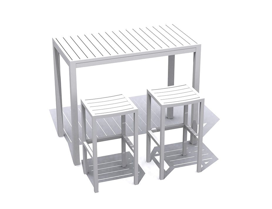 Seat Height: 75cm H, Seat Size: 40cm W x 36cm D, Frame Colour & Material: Matt White Aluminium Powdercoated, Foot Protector: Nylon Slides, Designer: Bent Design Studio, Assembly: None