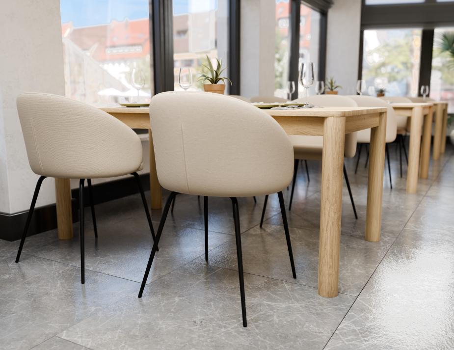 Experience the Henley Dining Chair in Fawn Beige Discover elegance and comfort combined in the Henley Dining Chair, designed to enhance your dining area while providing a luxurious seating experience. This chair features sleek black legs and a sophisticated fawn beige fabric upholstery, offering a modern touch to any decor. Its sturdy construction and timeless design make it a perfect choice for both contemporary and traditional settings. Exquisite Craftsmanship and Materials Crafted with attention to detail, the Henley Dining Chair boasts a durable frame of matt black powder-coated steel, ensuring stability and long-lasting use. The seat is upholstered in high-quality 100% polyester fabric, known for its resilience and easy maintenance. With a Martindale rating of over 50,000 rubs, this chair is designed to withstand the demands of frequent use while maintaining its elegant appearance. Oeko-Tex certified fabric, ensuring the chair is free from harmful chemicals. Padded seat for enhanced comfort during long seating periods. Robust steel legs for a solid foundation and added durability.