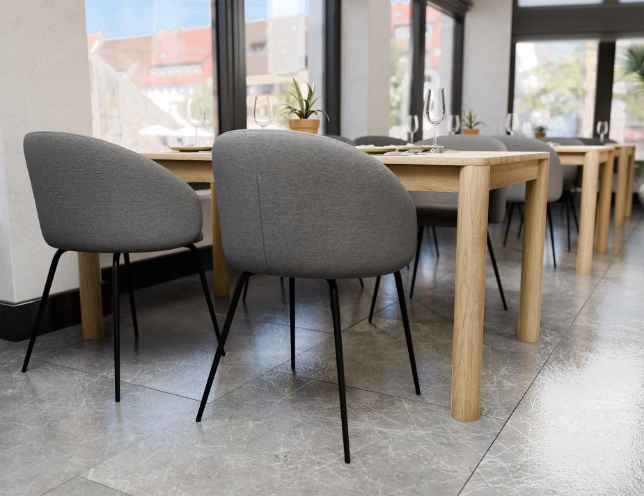Optimize Your Office Aesthetics with the Henley Dining Chair in Soho Grey Bring a touch of modern elegance to your business interiors with the Henley Dining Chair, now available in Soho Grey. Ideal for commercial settings that demand both style and practicality, this chair features matte black steel legs and an upscale mid-grey fabric upholstery. The neutral Soho Grey tone fits seamlessly into various office designs, from minimalist modern to classic corporate, enhancing any workspace or dining area with its refined aesthetics. Engineered for Endurance in Commercial Settings The Henley Dining Chair is tailor-made for the wear and tear of busy environments. It boasts a frame of matte black powder-coated steel that offers dependable stability and support. The upholstery in Soho Grey is not just visually appealing but also highly functional, made from 100% polyester with a Martindale rub rating well above 50,000, ensuring longevity and continuous appeal in high-traffic areas. Oeko-Tex certified fabric, ensuring the chair is free of harmful substances. A cushioned seat that provides sustained comfort, crucial for long meetings or dining sessions. Strong steel legs that efficiently support a diverse range of user weights, suitable for varied commercial use.