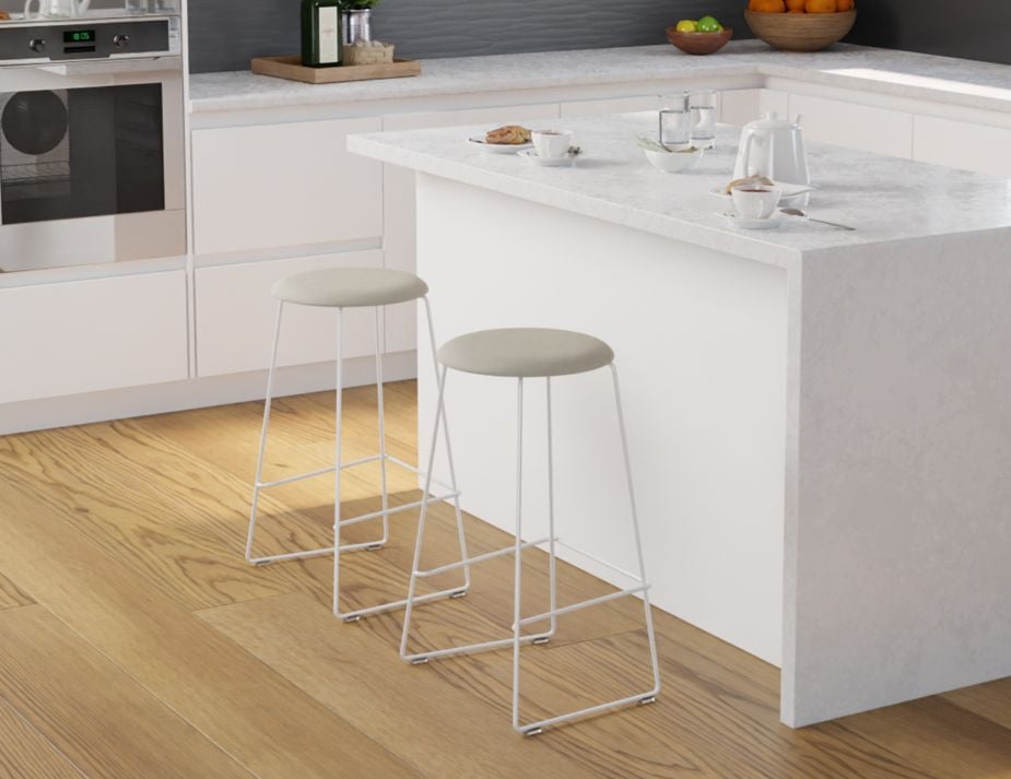 The white Hugo Bar Stool with Fabric Round Seat is an excellent option for hotels that want to create a fresh and modern seating area for their guests.