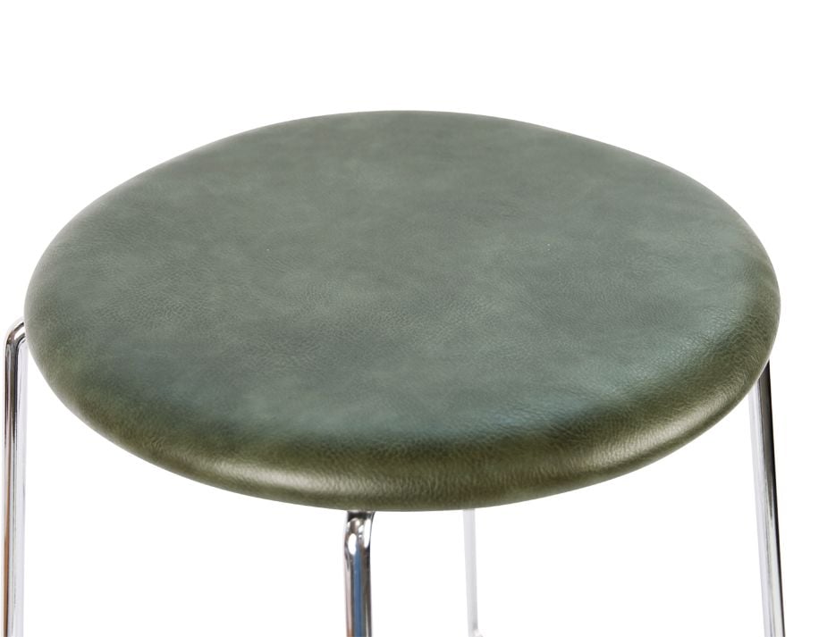 Hugo Low Stool - Chrome - Vintage PU Seat - 46cm Round / Vintage Green PU Seat