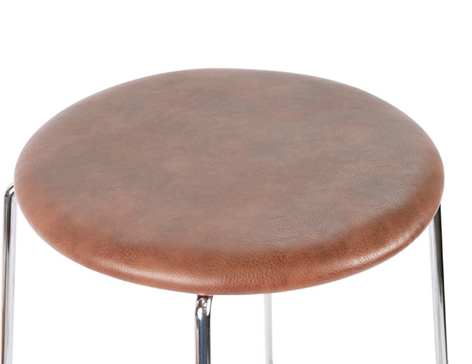 The Chrome Hugo Low Stool with a vintage PU covered round seat is the perfect seating option for hotels and restaurants looking to upgrade their decor.