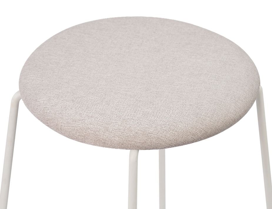 The White Hugo Low Stool with a fabric seat is the perfect choice for business owners looking to upgrade their commercial seating.