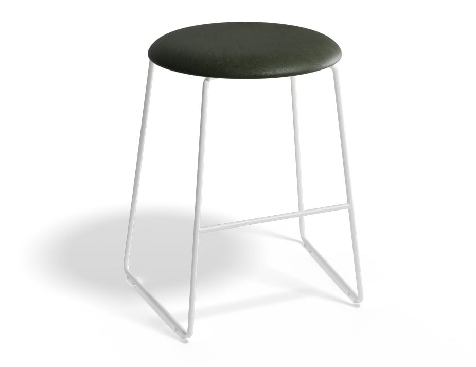Hugo Low Stool - White - Vintage PU Seat - Vintage Green PU Seat