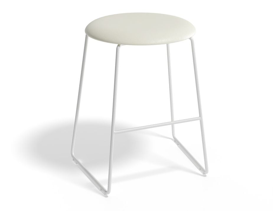 The White Hugo Low Stool with a Vintage PU Round Seat is the perfect addition to any bar furniture or seating area.