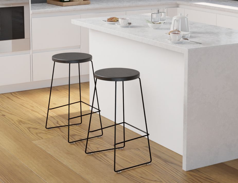 Hugo Bar Stool - Black - Black Seat - 78cm Bar Height Round Seat