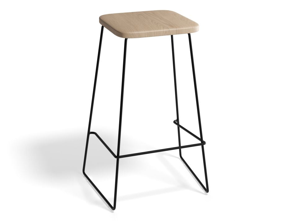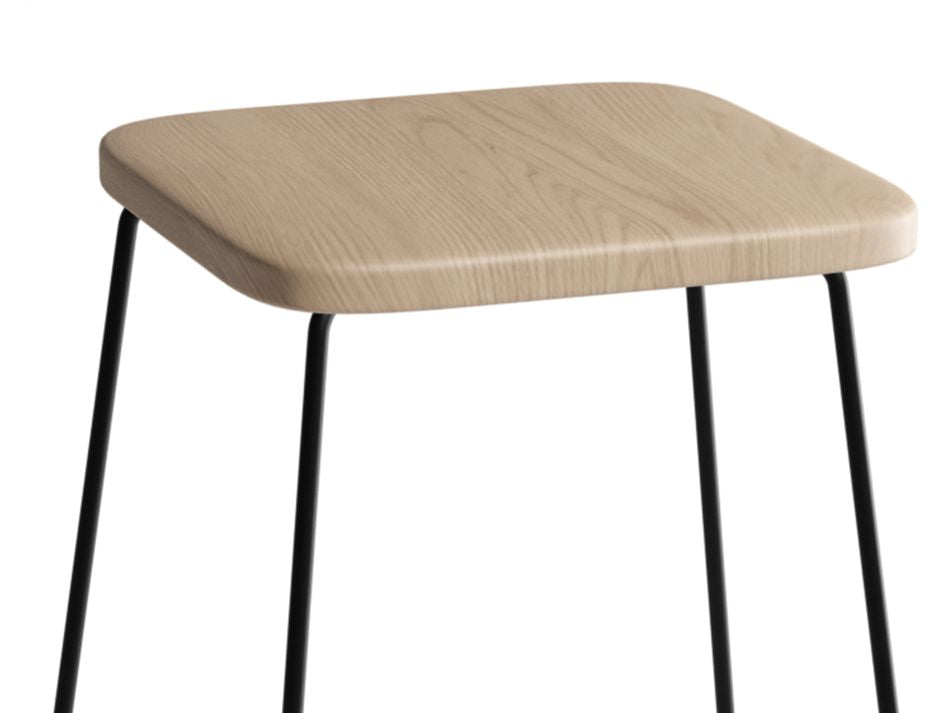 The natural American Ash Wood seat provides a warm and inviting feel, while the black powder coated steel frame adds a touch of industrial style. The seat height of 68cm/78cm is suitable for most bar counters, allowing for comfortable seating for extended periods of time. This stool's size of 45cm W x 34cm D x 68cm/78cm H is compact enough to fit into smaller spaces, but still provides ample seating for guests. The solid steel frame is sturdy and durable, making it ideal for high-traffic areas and commercial use. The black powder coating ensures that the frame will retain its sleek and modern appearance, even with daily use. The Hugo Stool is the perfect addition to any modern cafe, bar or restaurant, offering both style and functionality. It's a great choice for furniture outfitters looking to add to their commercial furniture collections.