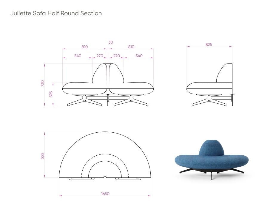 Juliette Sofa Half Round Section - Sculptural Seating for Premium Commercial Spaces The Juliette Sofa Half Round Section is a striking, sculptural modular seating solution designed for high-end commercial interiors. Its fluid, organic shape and plush fabric upholstery create dynamic seating arrangements that promote interaction and engagement. Ideal for trade professionals, this modern curved sofa is perfect for hotel lobbies, open-plan office spaces, collaborative work environments, and luxury hospitality venues. Versatile Design for Collaborative and Informal Spaces Designed with versatility in mind, the Juliette Sofa Half Round Section offers a unique aesthetic that enhances any commercial space. Its half-circle shape is perfect for creating interactive lounge areas, breakout zones, or informal meeting spaces. Whether used as a standalone accent or paired with other modular sections from the Juliette collection, this curved sofa adapts easily to any layout, transforming professional environments with its contemporary, inviting design. Durable Comfort and Premium Upholstery for High-Traffic Areas Upholstered in high-quality fabric, the Juliette Sofa Half Round Section offers a luxurious texture and soft-touch feel, while ensuring durability for high-traffic commercial settings. The premium fabric provides a sophisticated finish, elevating both minimalist and vibrant interiors. Perfect for executive waiting areas, boutique hotels, and upscale co-working spaces, this curved sofa delivers both comfort and style, maintaining the highest standards of commercial-grade seating while providing long-lasting performance.