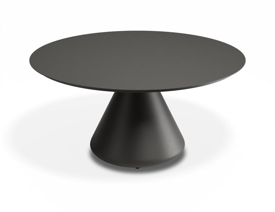 Aluminum Round Outdoor Coffee Table - Kora 90m Dia in Charcoal The Kora Coffee Table 90m Dia - Outdoor - Charcoal - Aluminum Top is a dependable, clean-lined solution for outdoor environments demanding high durability and design cohesion. Built to complement outdoor commercial and residential applications, this round outdoor coffee table offers structural reliability with a refined matte finish that fits seamlessly into modern outdoor layouts. Low-maintenance aluminum top with functional, modern appeal The aluminum tabletop delivers strong visual consistency with exceptional outdoor performance. Its powder-coated finish offers excellent resistance to corrosion, UV exposure and daily wear, making it well-suited for high-use environments. With a wide circular surface and a smooth tactile finish, the aluminum top maintains its form and function through weather variation while offering a lighter-weight alternative to ceramic. Built for outdoor reliability and project versatility This large round coffee table offers long-term reliability across commercial landscapes, hospitality terraces and residential outdoor spaces. Its aluminium top and matching conical base form a unified, streamlined look, ensuring stability while offering easy maintenance and flexibility during installation. Designed to integrate effortlessly with a range of outdoor furniture styles, Kora supports clear, functional zoning across alfresco environments.