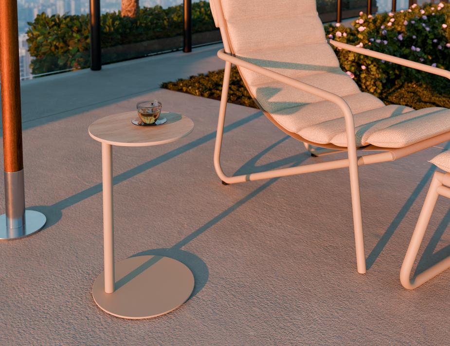Latte Ceramic Outdoor Side Table for Soft, Refined Alfresco Living The Lira Side Table in Latte with a Dune Ceramic Top is a clean, elegant option for those wanting subtle texture and timeless colour in their outdoor setting. Designed with simplicity in mind, this round outdoor side table brings lightness and calm to balconies, garden terraces or pool decks. The dune ceramic top adds natural texture, while the Latte aluminium base keeps things stable, light, and weather-safe. Powder-Coated Aluminium and Ceramic Surface - Built for Outdoor Performance This outdoor ceramic table is made with a scratch-resistant Dune ceramic top and powder-coated aluminium frame, offering excellent resistance to sun, rain, and daily wear. The soft Latte tone provides a neutral anchor point that works across minimalist, coastal or earthy outdoor styles. It's a waterproof outdoor side table that looks good and performs well year-round. Refined, Low-Maintenance Side Table for Outdoor Seating Zones Perfect for placing beside sunlounges or casual armchairs, this ceramic side table offers just enough space for drinks, sunglasses or a good read. It's easy to move, simple to clean, and blends quietly into your existing outdoor layout—making it a great fit for both residential use and relaxed commercial settings.