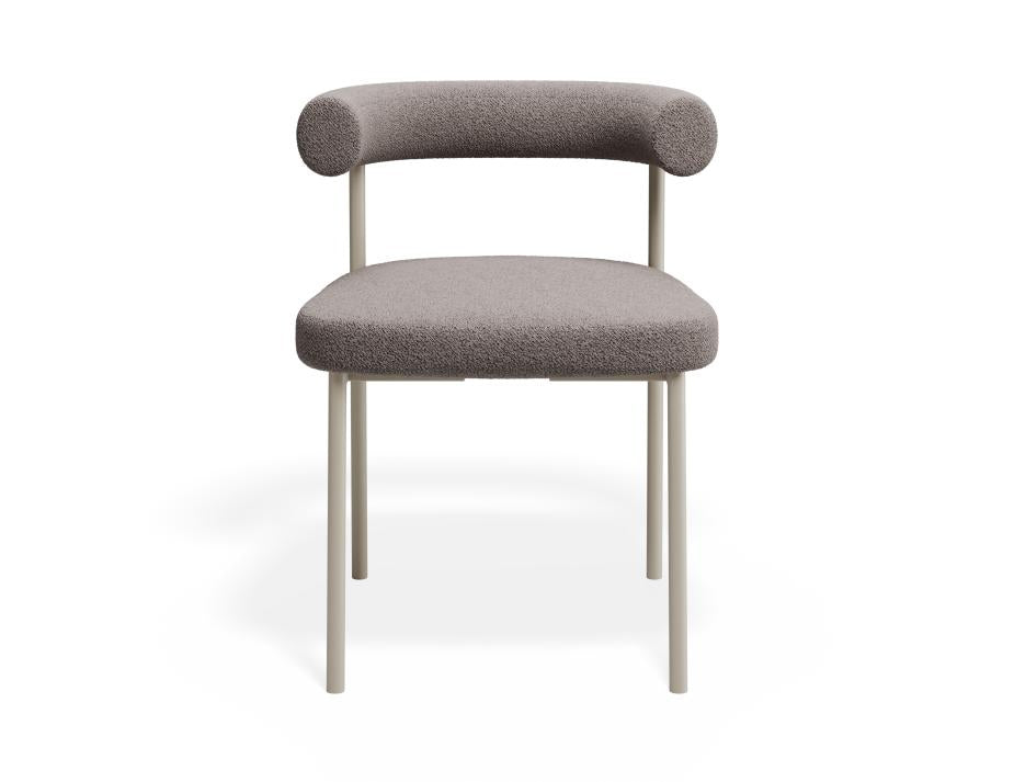 Marlowe Dining Chair - Grey Legs - Oyster Grey Fabric The Marlowe Dining Chair in Oyster Grey offers a fresh, light-toned seating solution for modern commercial and residential interiors. With its rounded tubular backrest and cushioned seat, it delivers comfort and visual softness. The pale grey upholstery pairs effortlessly with the powder-coated grey steel legs, giving the chair a cohesive and contemporary look ideal for open-plan dining zones or workplace breakout areas. Subtle tonal pairing with durable construction Upholstered in Oyster Grey 100% polyester with a Martindale rating over 50,000 rubs, this chair performs in busy environments while maintaining a refined appearance. Its ergonomic form supports relaxed posture, while the slim leg profile and curved frame keep the aesthetic clean and adaptable. Refined and minimal for coastal or tonal interior schemes At 59cm wide, the Marlowe Dining Chair is well-suited to compact footprints. Its pale, layered finish complements natural materials like timber, terrazzo and travertine, making it an ideal choice for cafés, design-forward workspaces or calm residential settings.