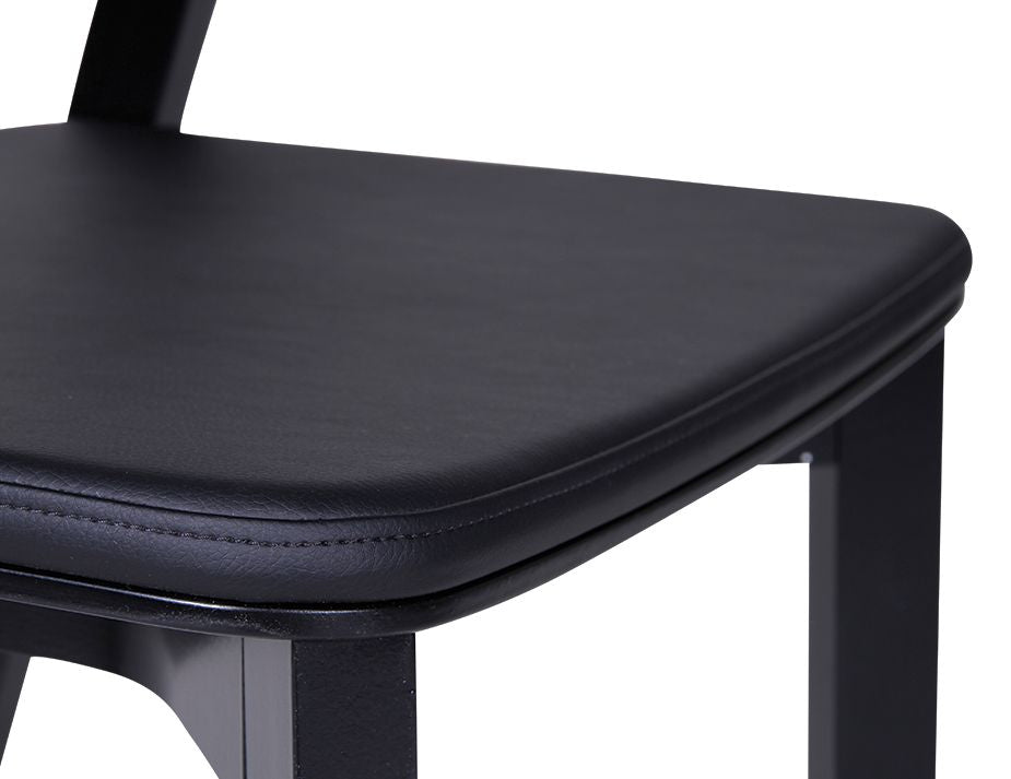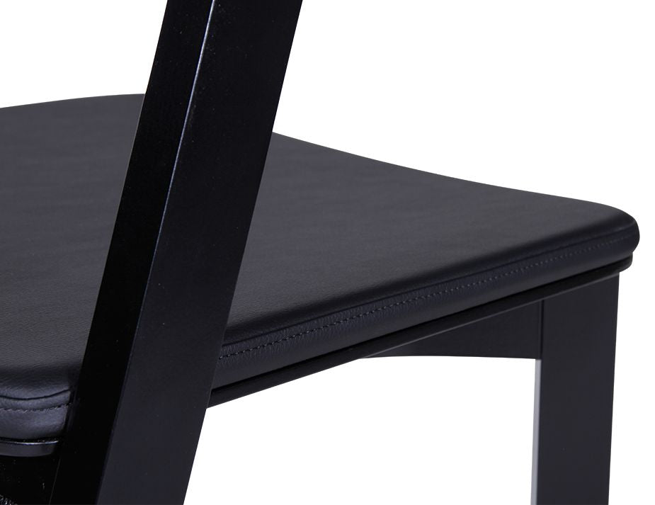 Experience Timeless Elegance with the Black Stained Merano Chair Introducing the Merano Chair - Black Stained Beechwood - Black Pad by TON, a masterpiece that perfectly embodies elegance and comfort. With meticulous attention to detail, this wooden armchair is crafted in the renowned TON factory in the Czech Republic, showcasing unparalleled sophistication. European Beechwood Black Stained Frame Crafted from premium European Beechwood, the Merano Chair features a captivating black stain finish that adds a touch of sophistication to its sleek and sturdy frame. The clean lines and minimalist design of the frame create an aesthetic that effortlessly complements any setting. Whether it's a modern office, a chic dining room, or a stylish lounge area, the Merano Chair adds a touch of elegance and blends seamlessly with various interior styles. Indulge in luxurious comfort: Category A Vinyl Upholstery in Grain Negro Indulge in luxurious comfort with the upholstered seat and backrest of the Merano Chair. Wrapped in Category A Grain Negro, a premium black vinyl fabric sourced from Italy, the chair offers both opulence and durability. Sink into the plush padding and experience the perfect blend of style and coziness. Sleek Design and Versatility: The Perfect Stackable Seating Solution The Merano Chair is a testament to functional design. Its black-stained beechwood frame provides a strong and stable foundation, ensuring lasting durability. The padded seat and backrest offer unparalleled comfort, allowing you to relax and unwind for extended periods. Additionally, the chair's stackability feature provides convenient storage and flexibility, making it ideal for various spaces and occasions.
