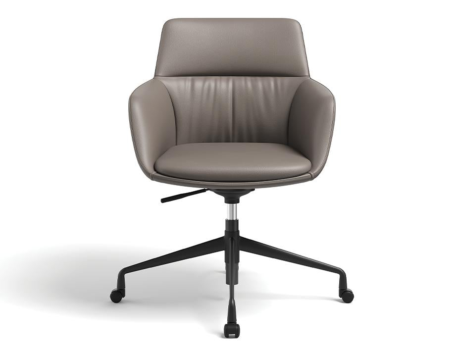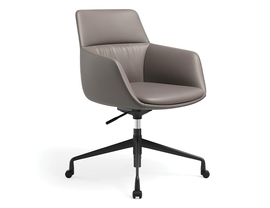 Upholstered Nola Armchair High Arm with Swivel Castor Base The Nola Armchair High Arm Swivel Base with Castors delivers plush comfort, mobility, and adaptability for dynamic work and meeting spaces. Part of the Sakura Collection, this upholstered high‑armchair pairs premium comfort with a height‑adjustable swivel base on smooth‑rolling castors, making it ideal for offices, collaborative work zones, and home workstations that demand flexibility. Premium comfort with mobility and adjustability Built with premium‑grade moulded foam cushioning, the Nola Armchair supports all‑day comfort while high armrests encourage proper posture. The durable steel base, finished in powder‑coated black, offers smooth 360° rotation and height adjustability from 46cm to 61cm seat height. Fitted with quality castors, this chair moves easily between work areas while maintaining stability. Available in DK Fabric, Thin Veins PU (Vinyl), and genuine Leather upholstery, it can be tailored to suit diverse workplace styles and performance needs. Versatile seating for agile workplaces and home offices Measuring 60cm wide, 59cm deep, and 82cm high, the Nola Armchair High Arm Swivel Base with Castors is designed for adaptable work environments. With its combination of plush comfort, rotational movement, adjustable height, and smooth mobility, it's an ideal seating solution for meeting rooms, flexible workstations, or contemporary home offices where functionality and style go hand‑in‑hand.