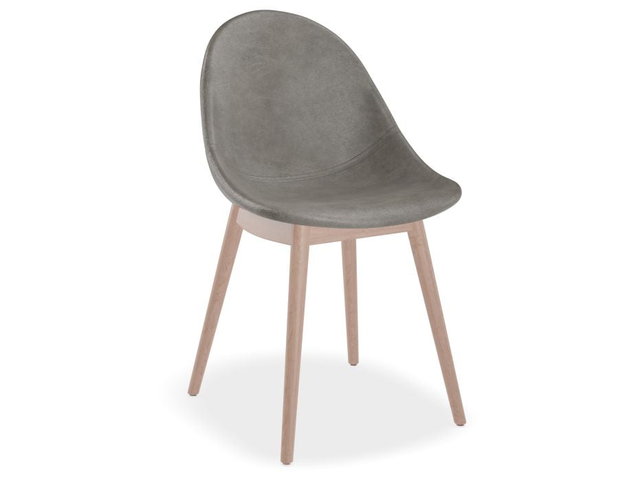 Pebble Chair Grey Upholstered Vintage Seat - Natural Beechwood Base