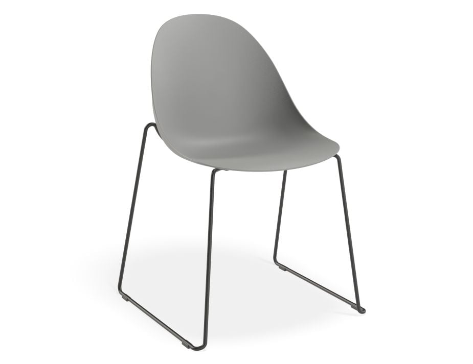 Pebble Chair Grey with Shell Seat - Sled Stackable Base - Black